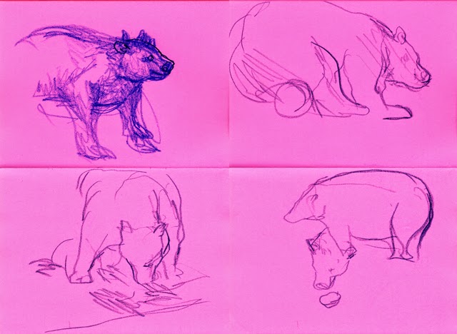 サッカーのシュートの練習や、野球のバッティングの練習みたいに、とにかく数をこなして体で覚える体験が、スケッチの時にも大事だと、動物を見て描きまくるのですが、見づらい、動く等、描き手の思い通りにはいかず、フラストレーションがたまるばかりの集中2時間半のスケッチ会をしました。そして、疲れて、動物から、それを見ている人たちに題材をシフトして、ふと、リラックス出来ている事を感じるのでした。ちょっと負荷をかけた後は、次にする事が楽になる、その感じです。